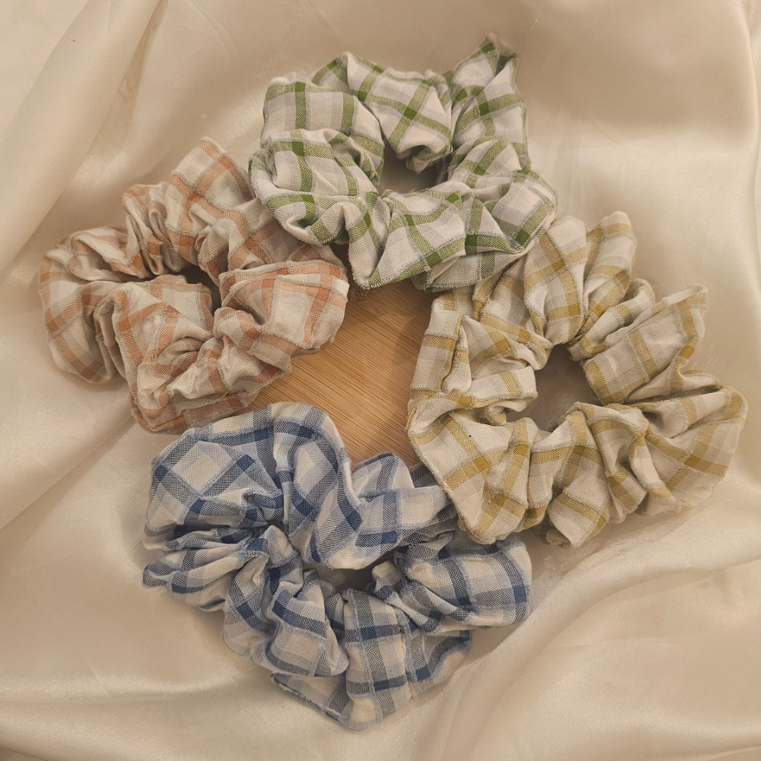 Elevate your hair game with the Cozy Checks scrunchie, designed for both comfort and style. Crafted from soft, breathable fabric with a classic checked pattern, it offers a secure yet gentle hold to prevent hair damage and creases. Ideal for everyday wear, this scrunchie balances functionality with a timeless aesthetic, making it an essential accessory for keeping your hair neat and effortlessly chic.